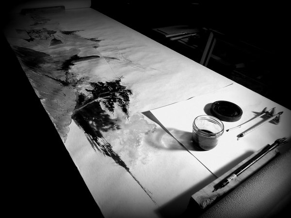 nun der Moment - in Trauer oder Freude - im warmen oder kaltem Raum - in Ruhe oder mit zitternder Hand - Tusche auf Papier.